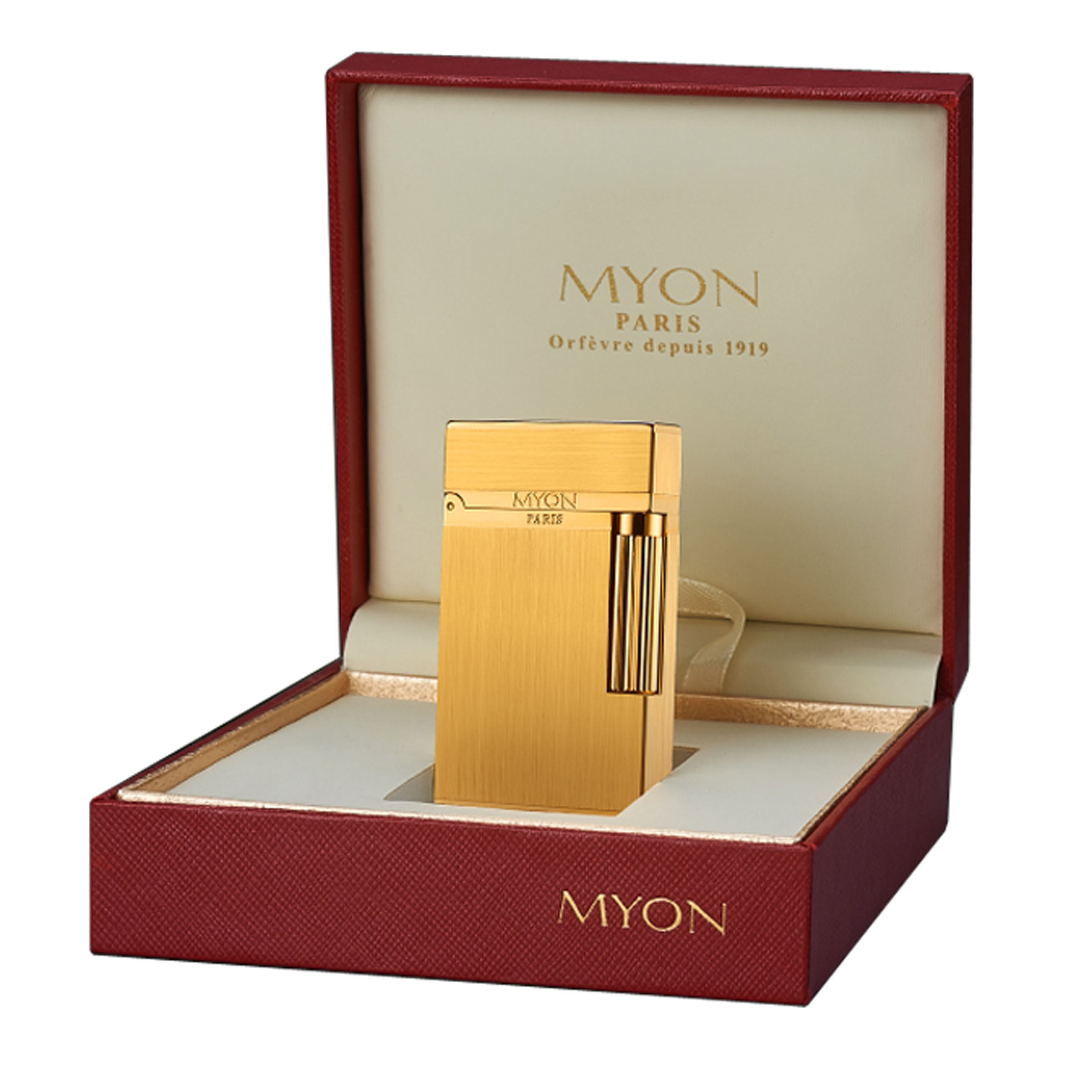 Myon is een Frans merk dat bekendstaat om zijn hoogwaardige aanstekers, en wordt gerelateerd aan het jaartal 1919—een symbool van langdurige expertise in vakmanschap.