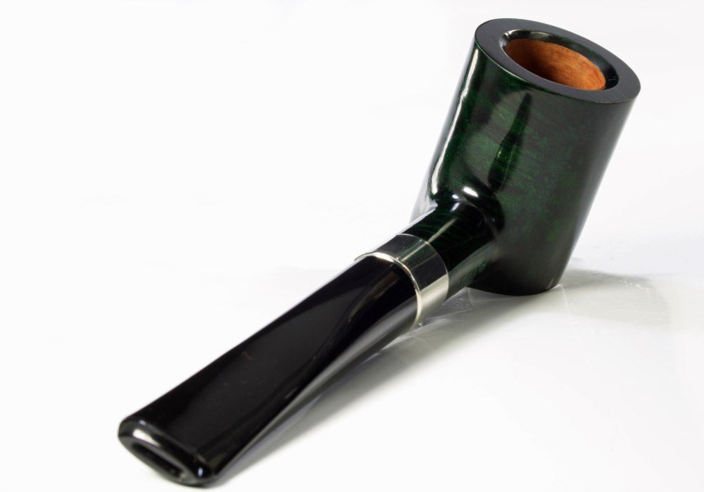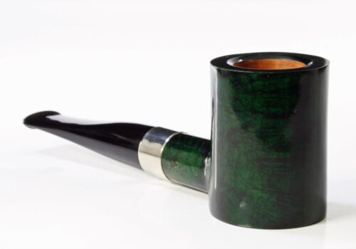 Deze groene pijp van Rattray’s is voorzien van een diepzwarte acryl steel, geboord voor gebruik met een 9mm filter, wat zorgt voor een zachtere rookervaring. De brede, glanzende nikkelen band tussen kop en steel geeft de pijp een luxe uitstraling en extra stevigheid.